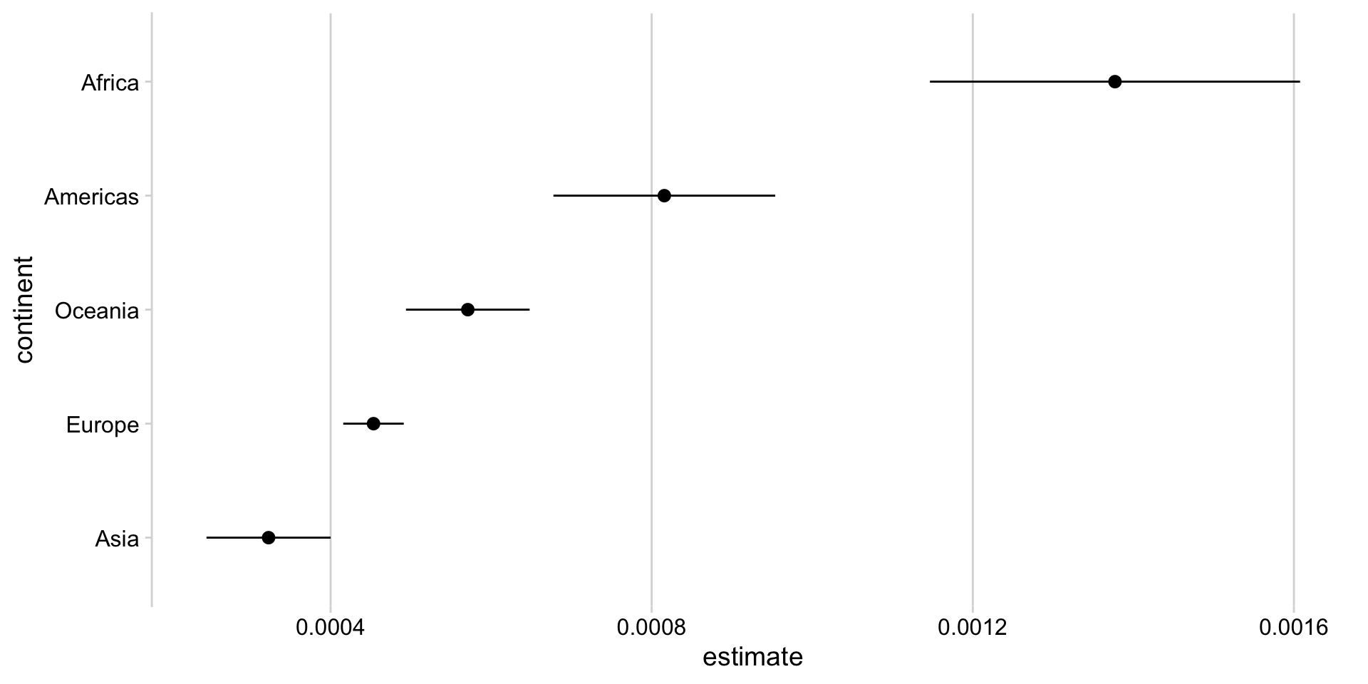 continent model_name term estimate std.error statistic p.value conf.low